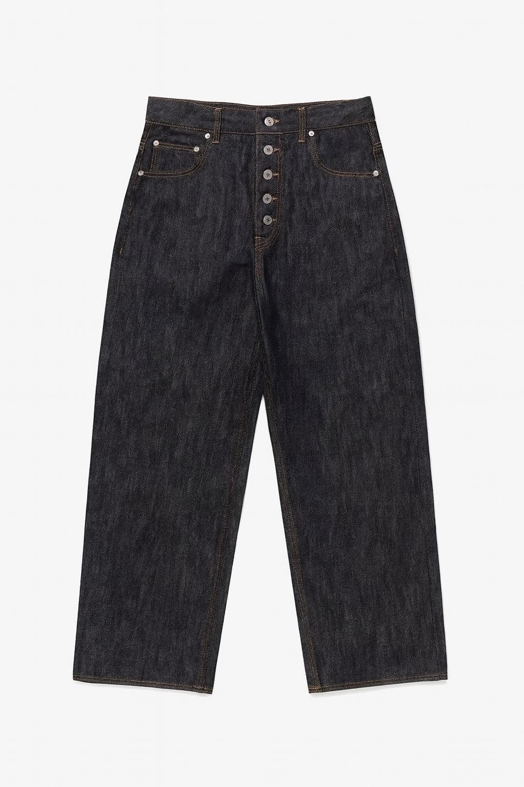 Cut from 16oz raw Japanese indigo selvedge denim, these jeans are built to evolve with wear. The fabric is woven on traditional shuttle looms, producing a dense weave with a visible slub texture that adds depth and character. Rope-dyed indigo yarns fade slowly, breaking in over time to reveal high-contrast patterns unique to you.